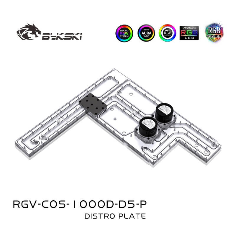 Bykski Distribution Plates are prepared to be operated with a D5 pump.