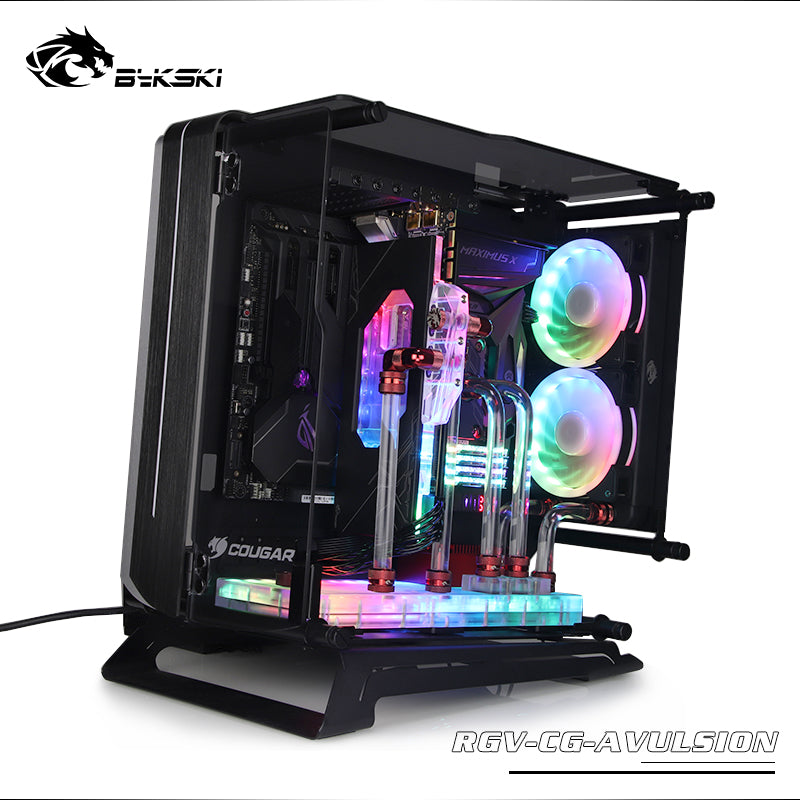 Our Bykski Distro Plate is designed to quickly and easily install a suitable hard tube water cooling system with a clean design into the Cougar Avulsion case.