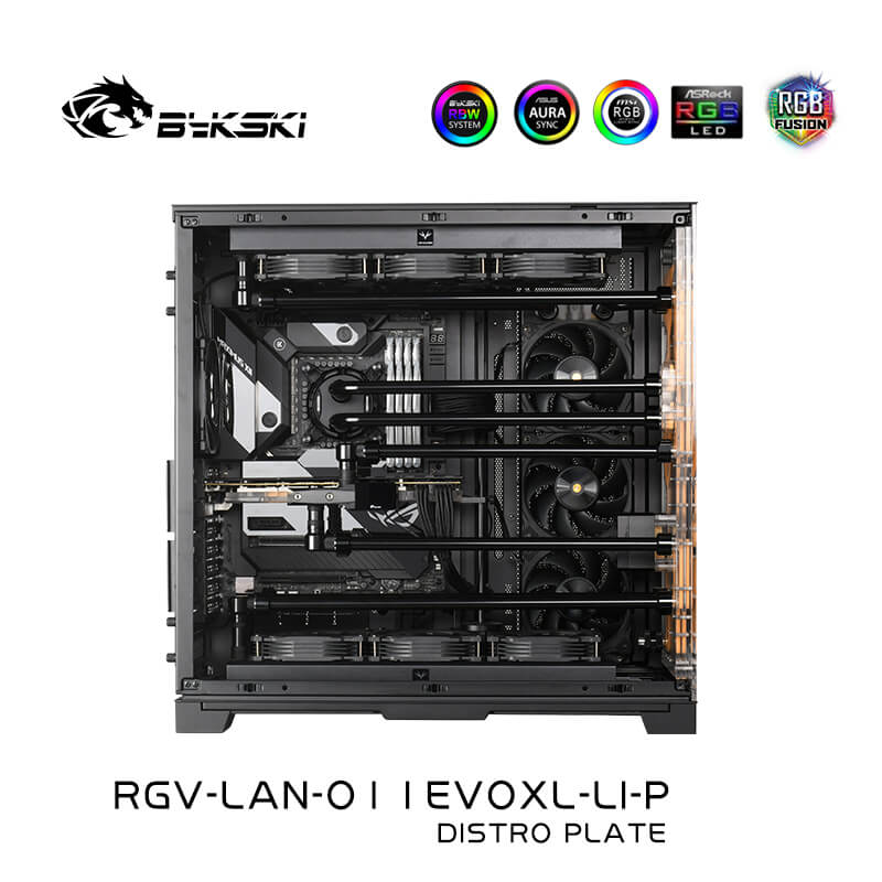 Our Bykski Front Distro Plate is designed to quickly and easily install a suitable hard tube water cooling system with a clean design into the Lian Li O11 Dynamic EVO XL case.