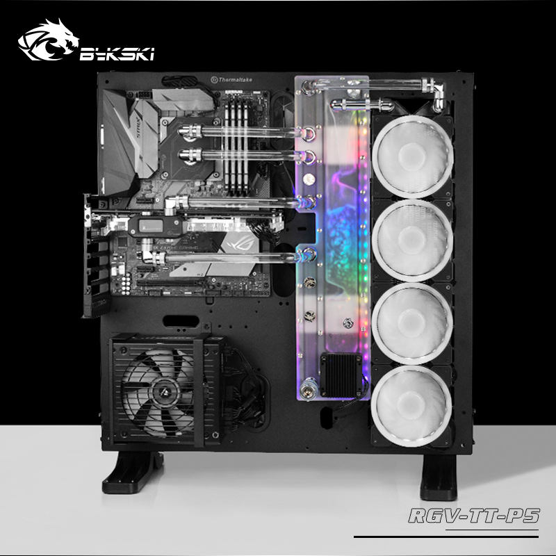 Our Bykski Distro Plate is designed to quickly and easily install a suitable hard tube water cooling system with a clean design into the Thermaltake P5 case.