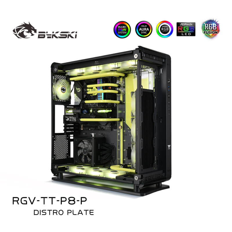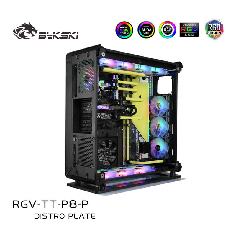 Our Bykski Distro Plate is designed to quickly and easily install a suitable hard tube water cooling system with a clean design into the Thermaltake P8 case.
