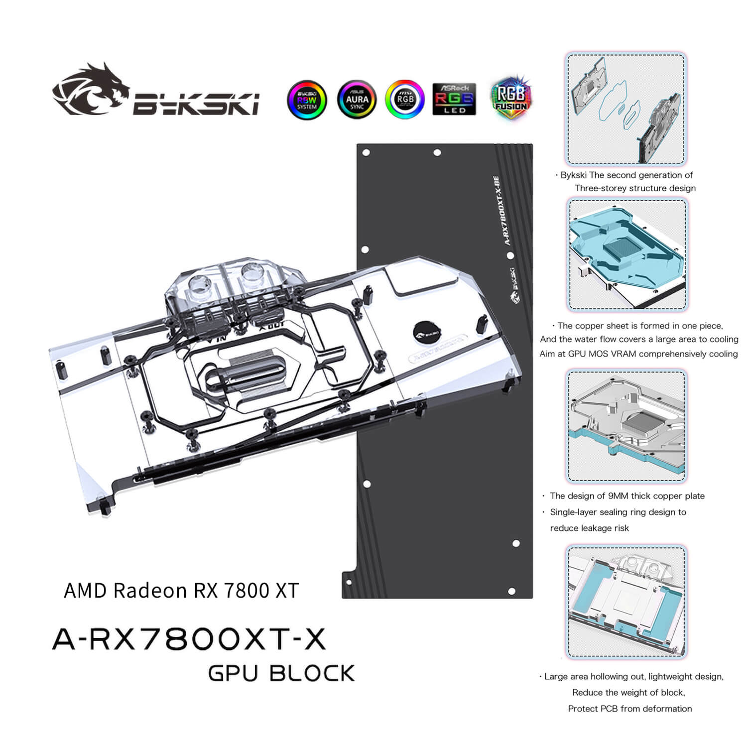 Bykski AMD Radeon RX 7800 XT GPU waterblock incl. backplate