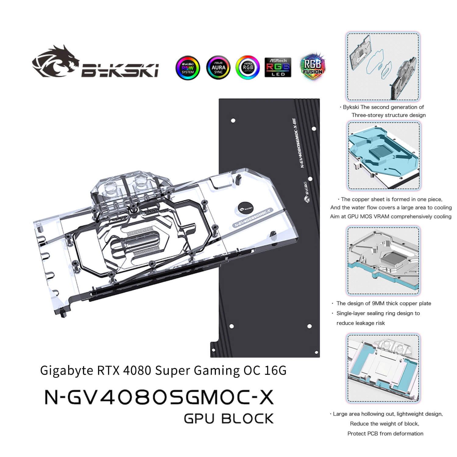 Bykski Gigabyte GeForce RTX 4080 SUPER Gaming GPU waterblock incl. backplate