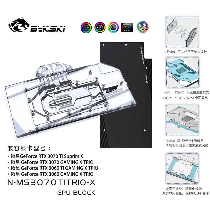 Bykski MSI 3060/3070 Gaming X Trio GPU waterblock