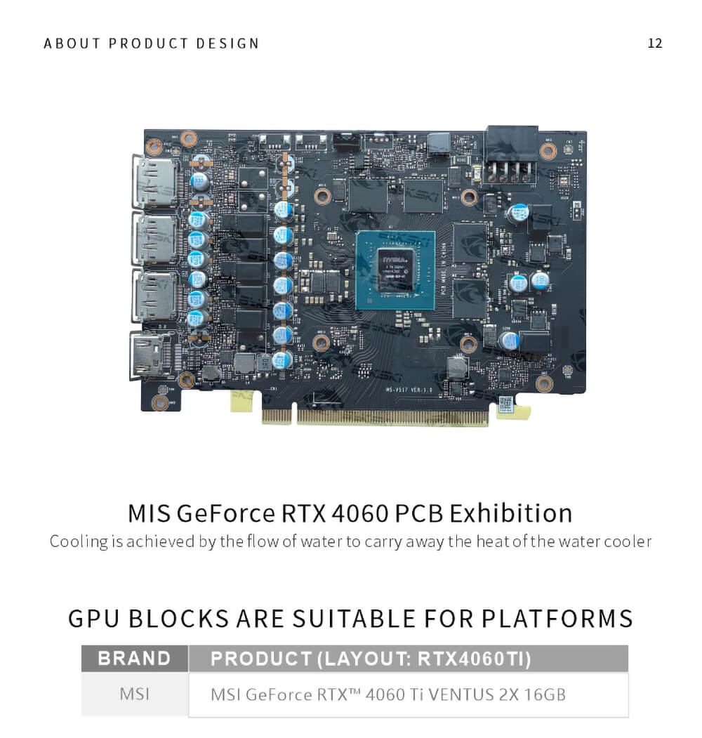 Bykski MSI GeForce RTX 4060 Ti Ventus 2X 16GB GPU waterblock incl. backplate